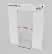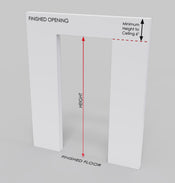 With an "Inch" measuring tape or laser, measure the vertical dimension from finished (AFF) or estimated finished floor to horizontal stud (2x4). It's a good idea to measure in 3 places, left, center and right and choose the smallest dimension. Max rough opening height is 110" for a 108" tall door. For higher sizes please contact us directly at 888 308 9778.If you do not have a rough opening height dimension yet, you can always enter the dimension of the door slab on right cell and system will calculate automatically your required R/O dimension on the left. read less
